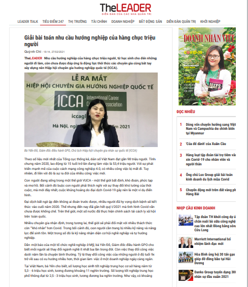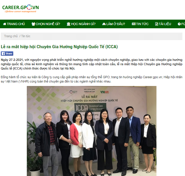 Các chuyên gia chia sẻ kinh nghiệm làm nghề và trải nghề trên Group: HIỆP HỘI CHUYÊN GIA HƯỚNG NGHIỆP QUỐC TẾ (ICCA). Bài ấn tượng sẽ được chọn đăng trên chuyên trang Hướng nghiệp Career.gpo.vn, chuyên mục chuyên gia chia sẻ về nghề.